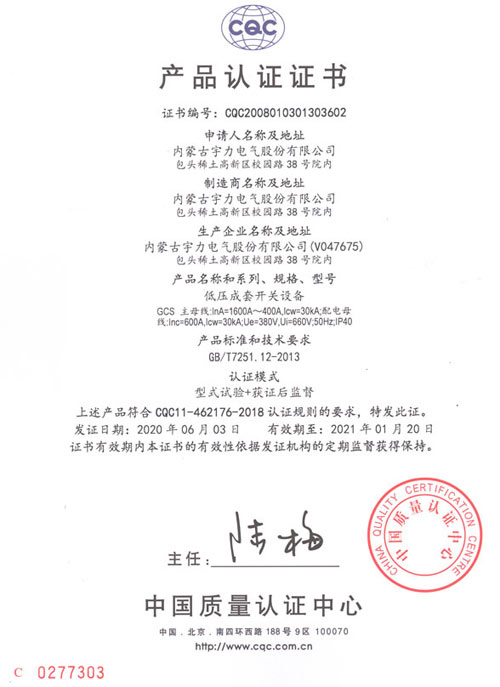 GCS低壓成套開關(guān)設(shè)備(CQC認(rèn)證)