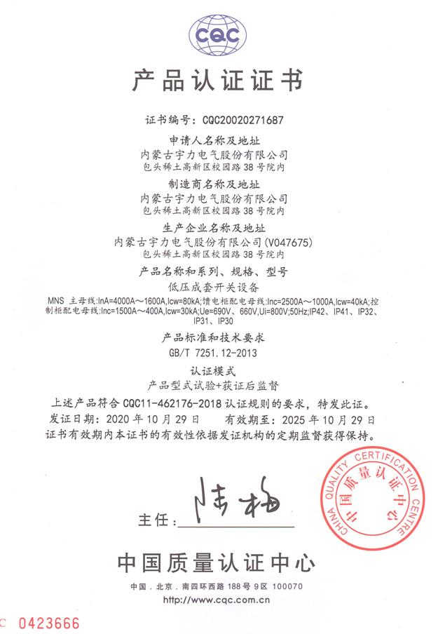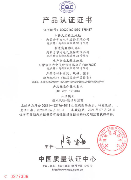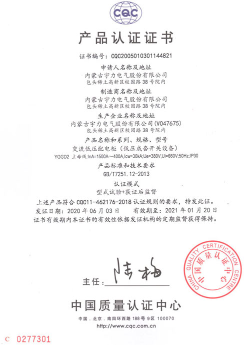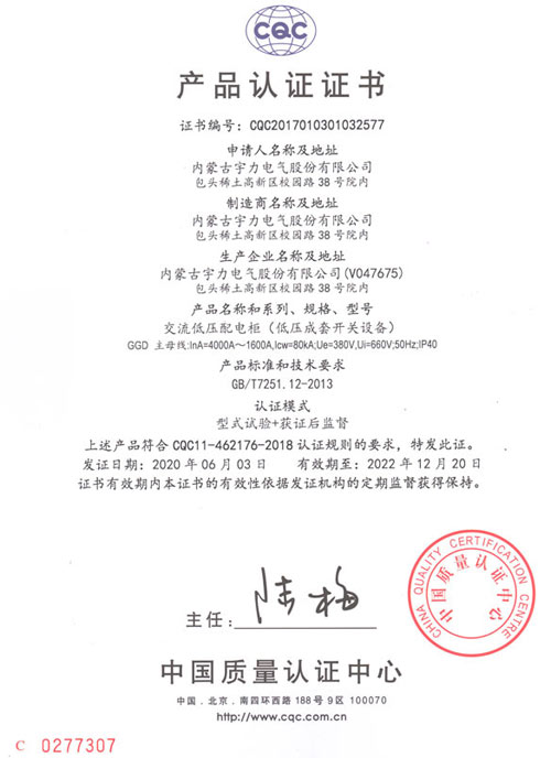 YGGD2交流低壓配電柜(CQC認(rèn)證)