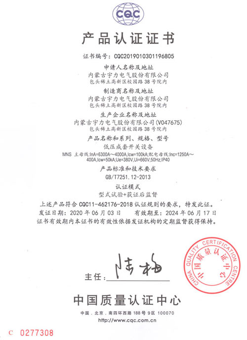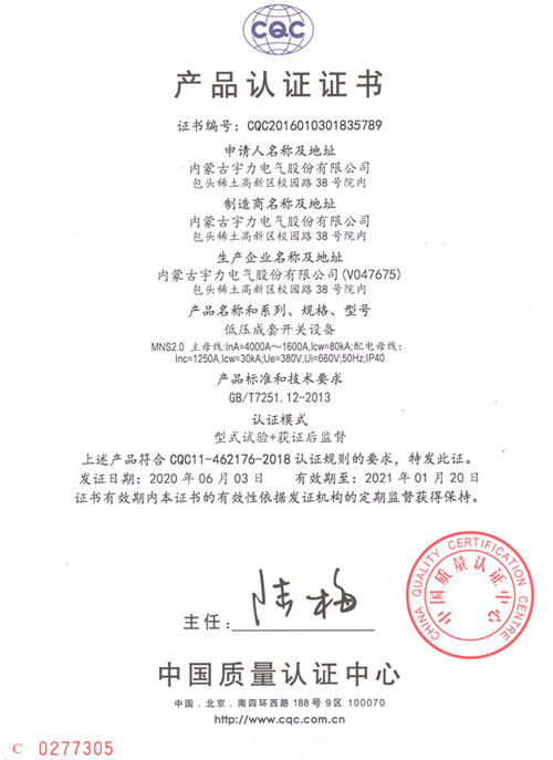 MNS2.0低壓成套開關(guān)設(shè)備(CQC認(rèn)證)