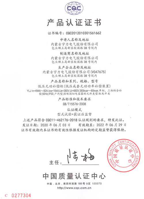 YLJ低壓無功補(bǔ)償柜(CQC認(rèn)證)