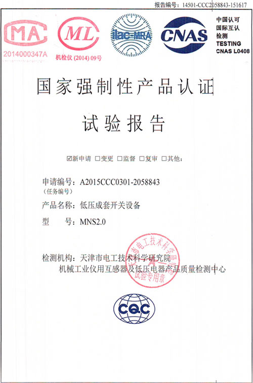 MNS2.0低壓成套開關(guān)設(shè)備(試驗(yàn)報告)