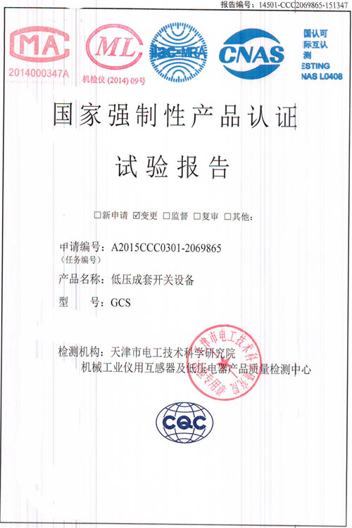 GCS低壓成套開關(guān)設(shè)備(試驗(yàn)報告)