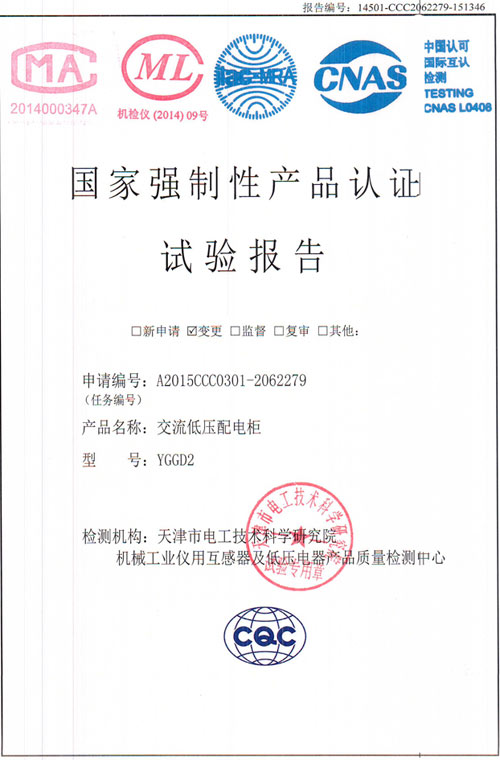 YGGD2交流低壓配電柜(試驗(yàn)報告)
