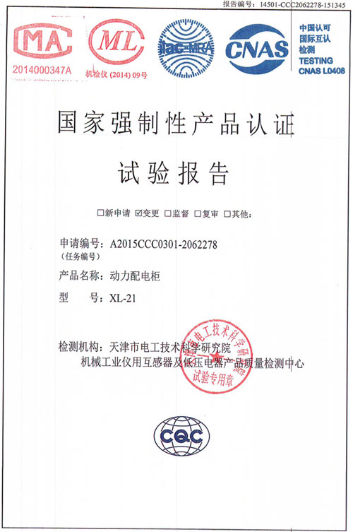 XL-21動力配電柜(試驗(yàn)報告)