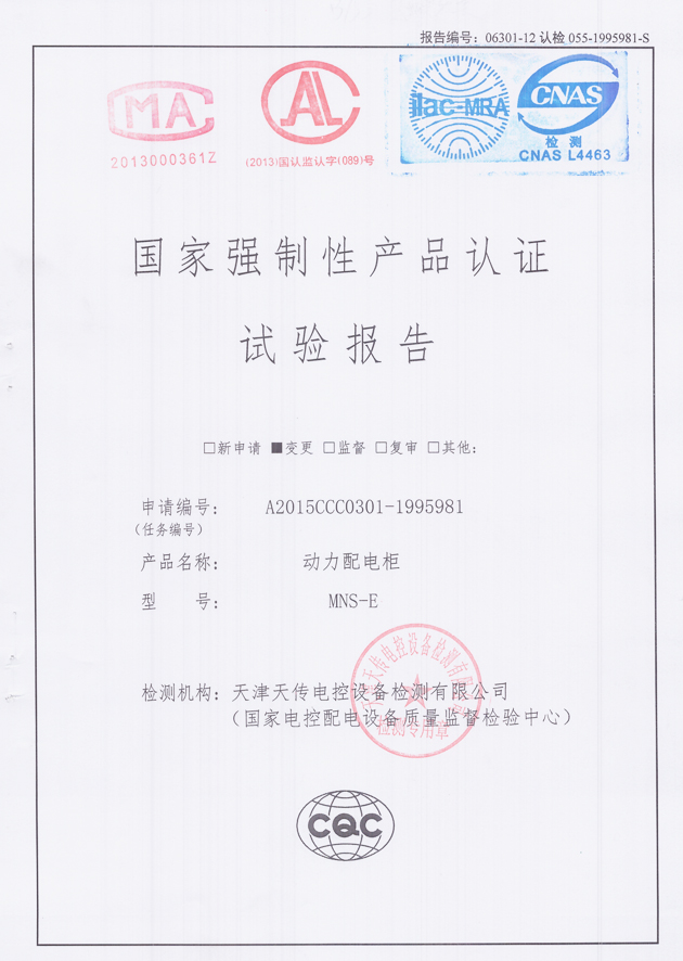 MNS-E動力配電柜(試驗(yàn)報告)