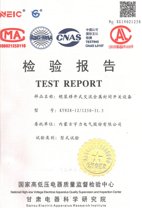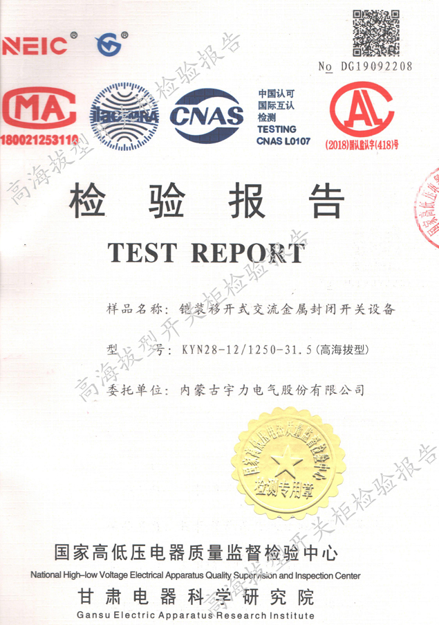 KYN28-12/1250-31.5高海拔型中置式開關(guān)柜(試驗(yàn)報(bào)告)