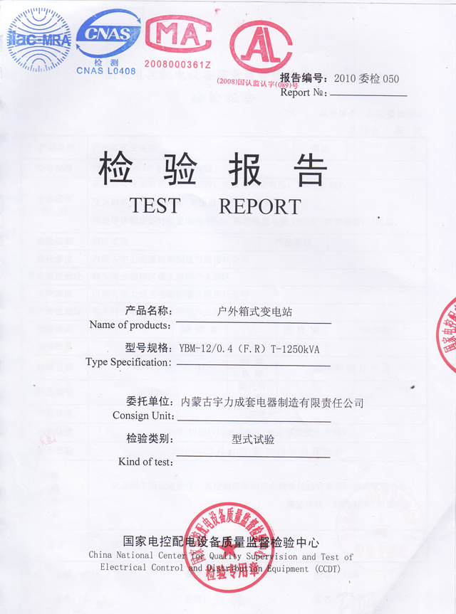 YBM-12/0.4戶外箱式變電站(檢驗(yàn)報(bào)告)
