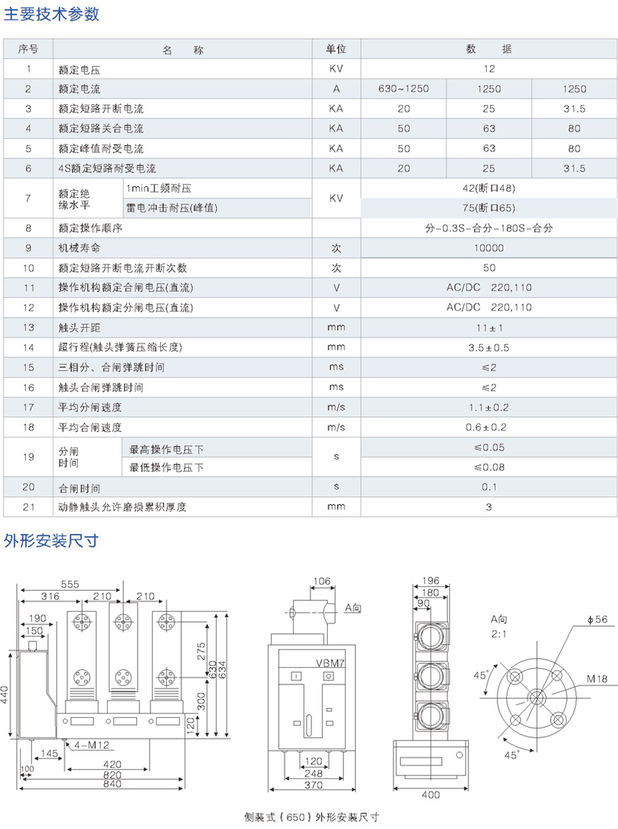 ZN63(VBM7)-12側(cè)裝式戶內(nèi)真空斷路器