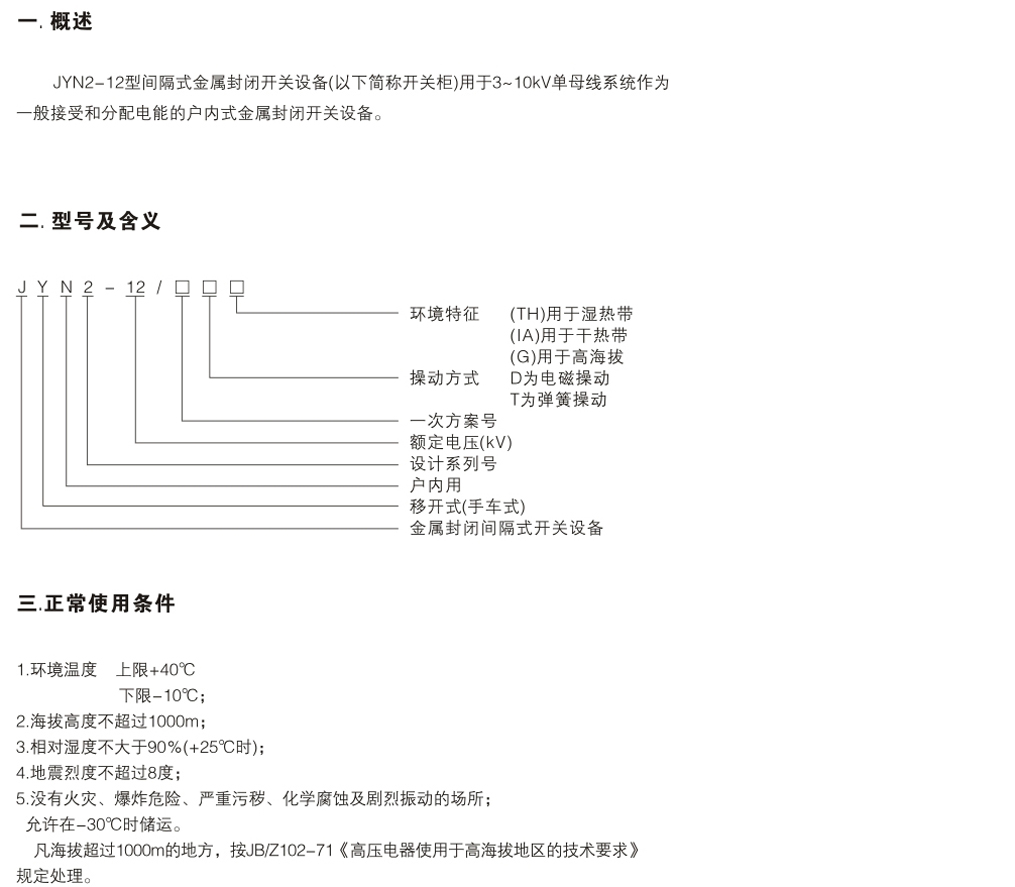 JYN2-12型間隔式金屬封閉開關設備