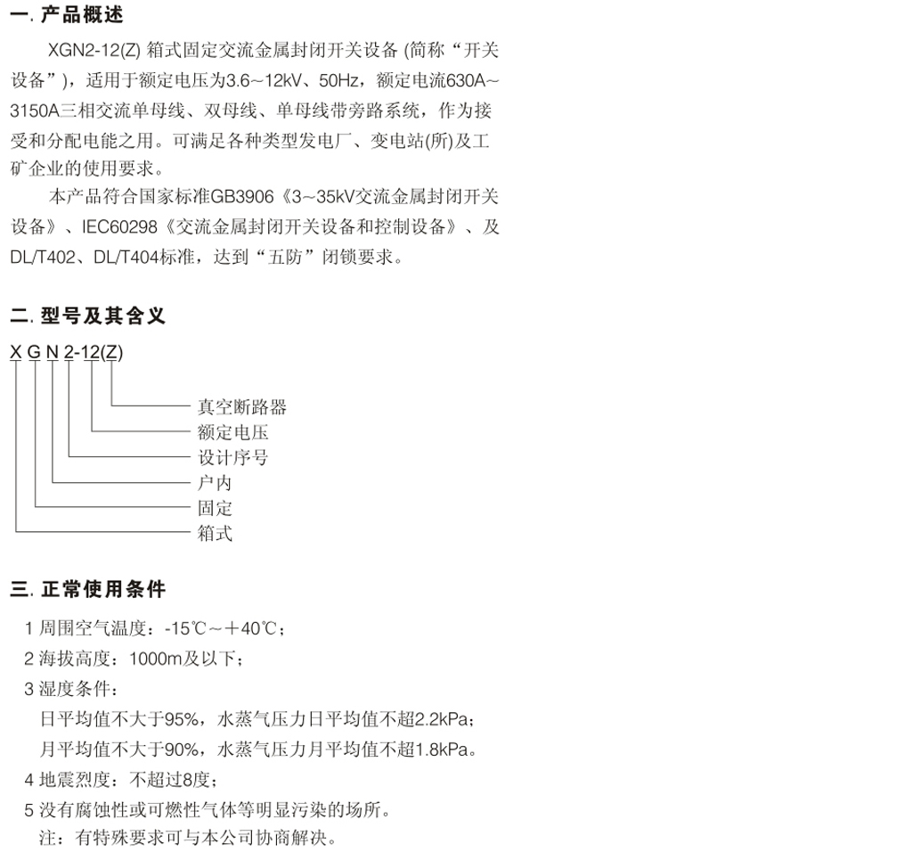 XGN2-12(Z)箱型固定交流金屬封閉開關(guān)設(shè)備